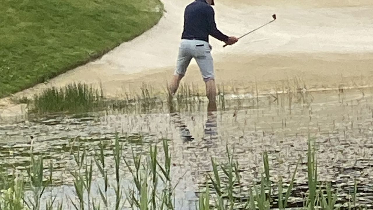 Martin Kaymer an der 18 : Der Abschlag ging leider in den Tümpel.