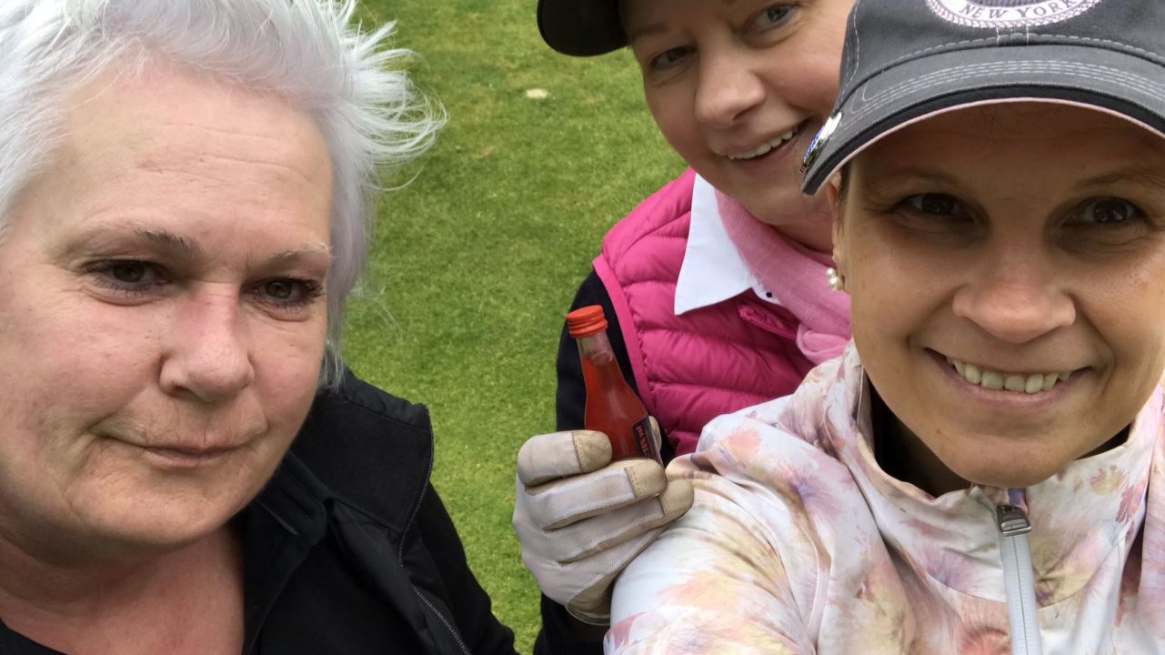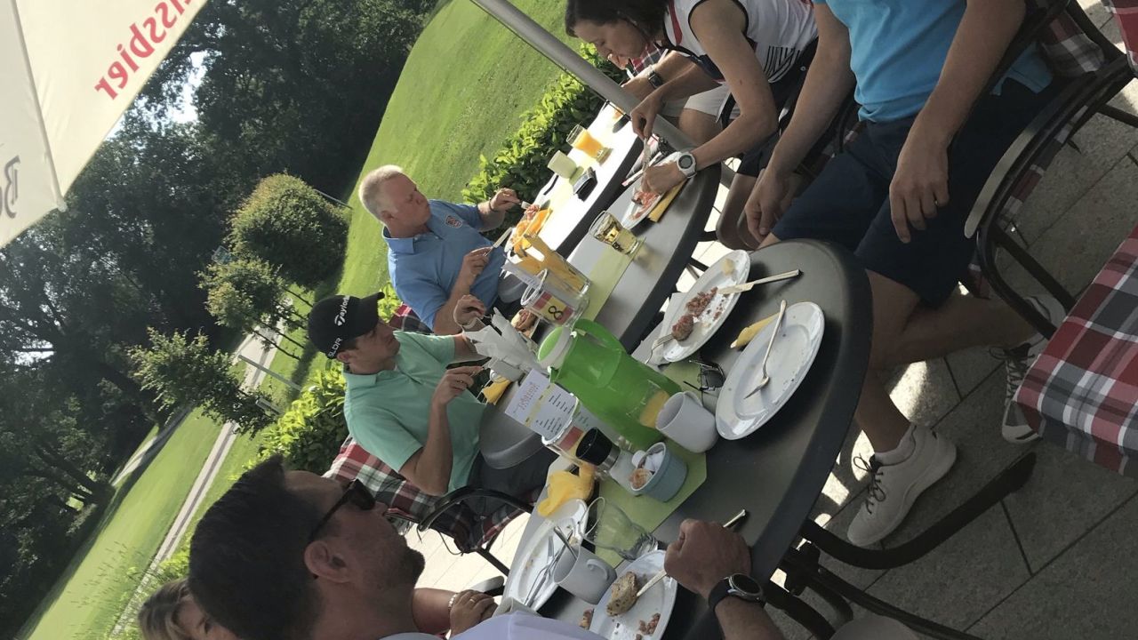 Heute um 6.45 Uhr aufgestanden und um 7.30 Uhr auf dem Golfplatz gestanden. 18 Loch gespielt bei 34 Grad.