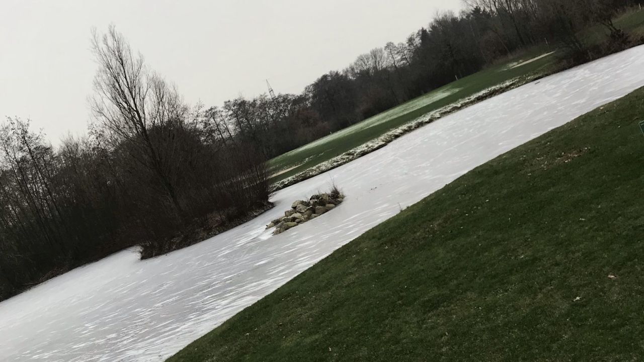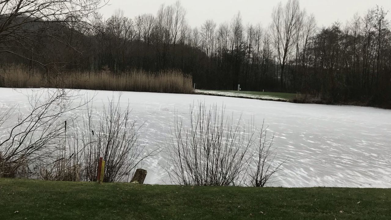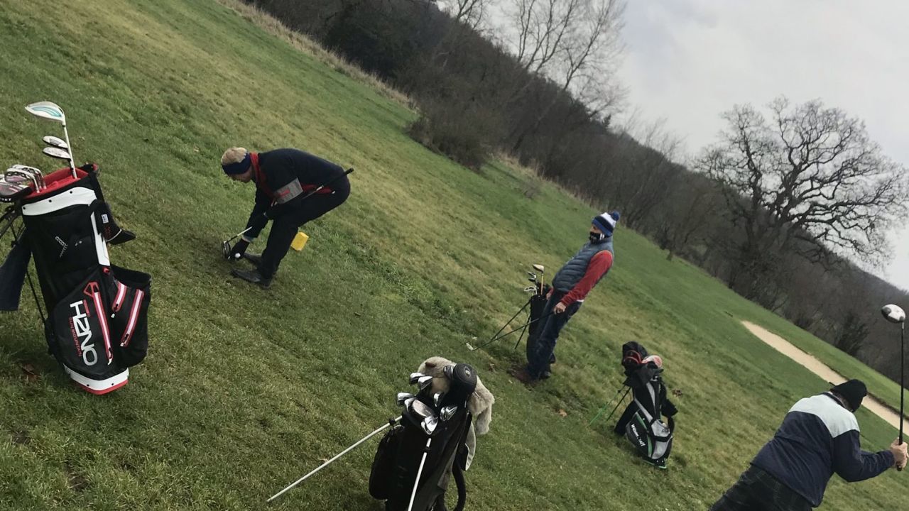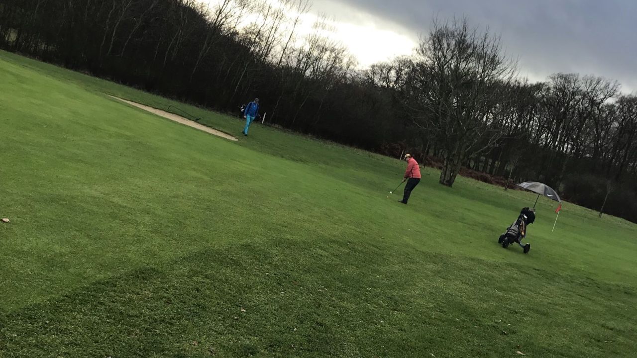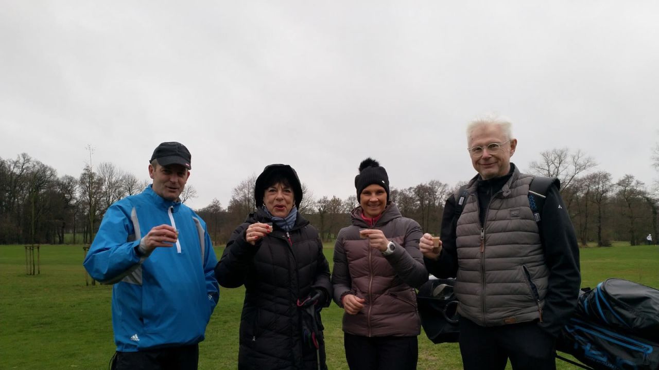 Frostige Runde mit Winter - Abschlägen und auf Wintergrüns gespielt. Kalt und windig war es..
