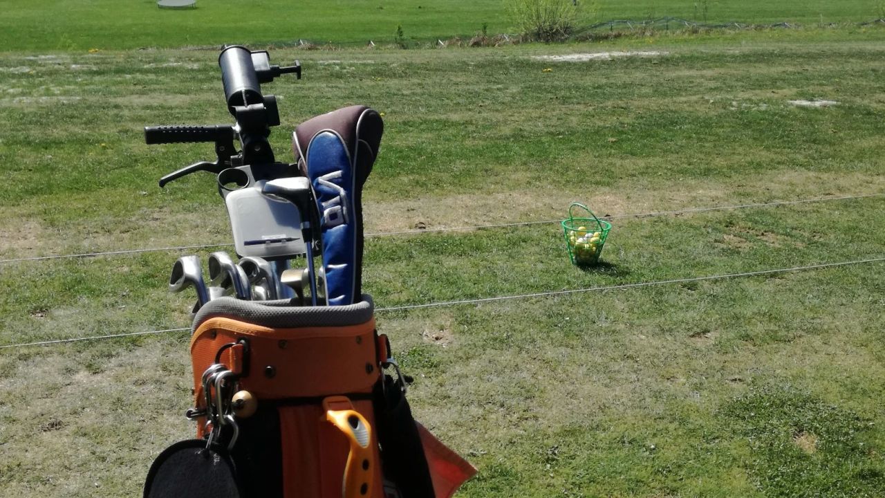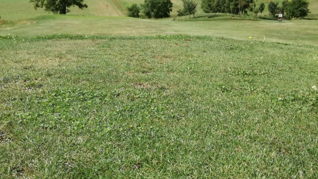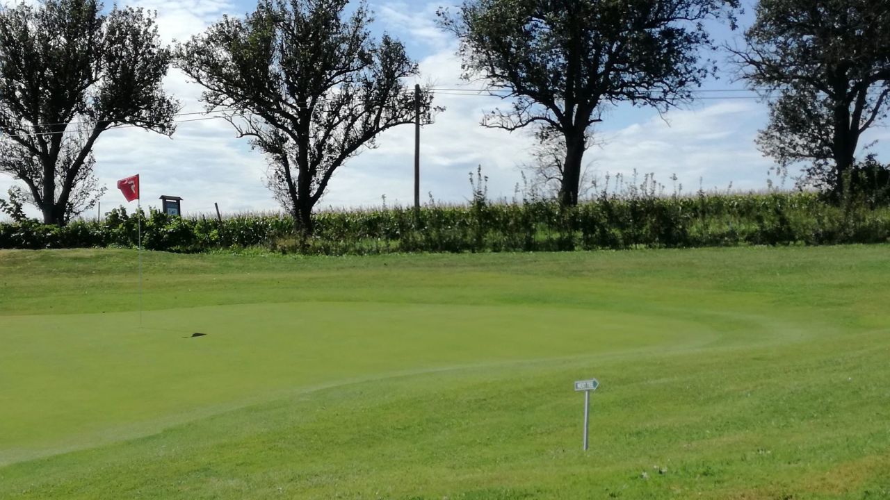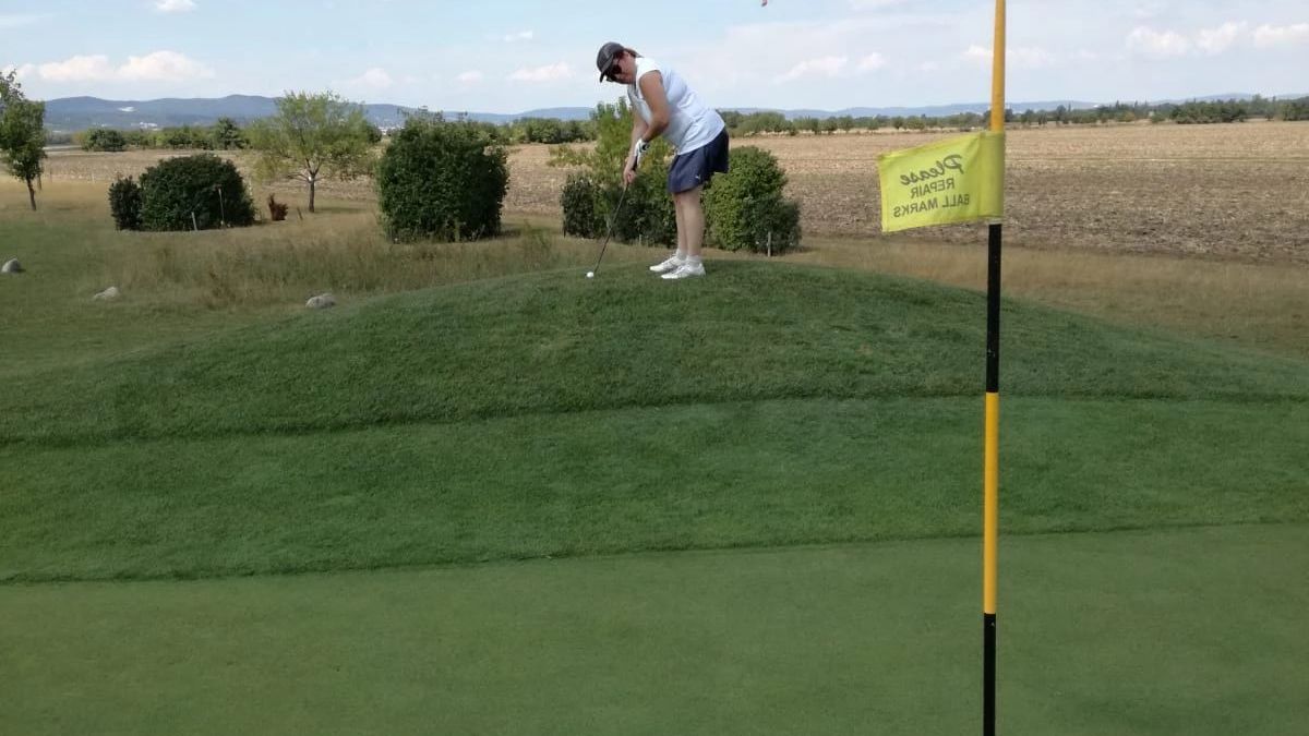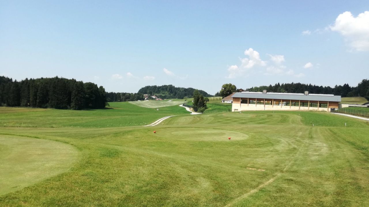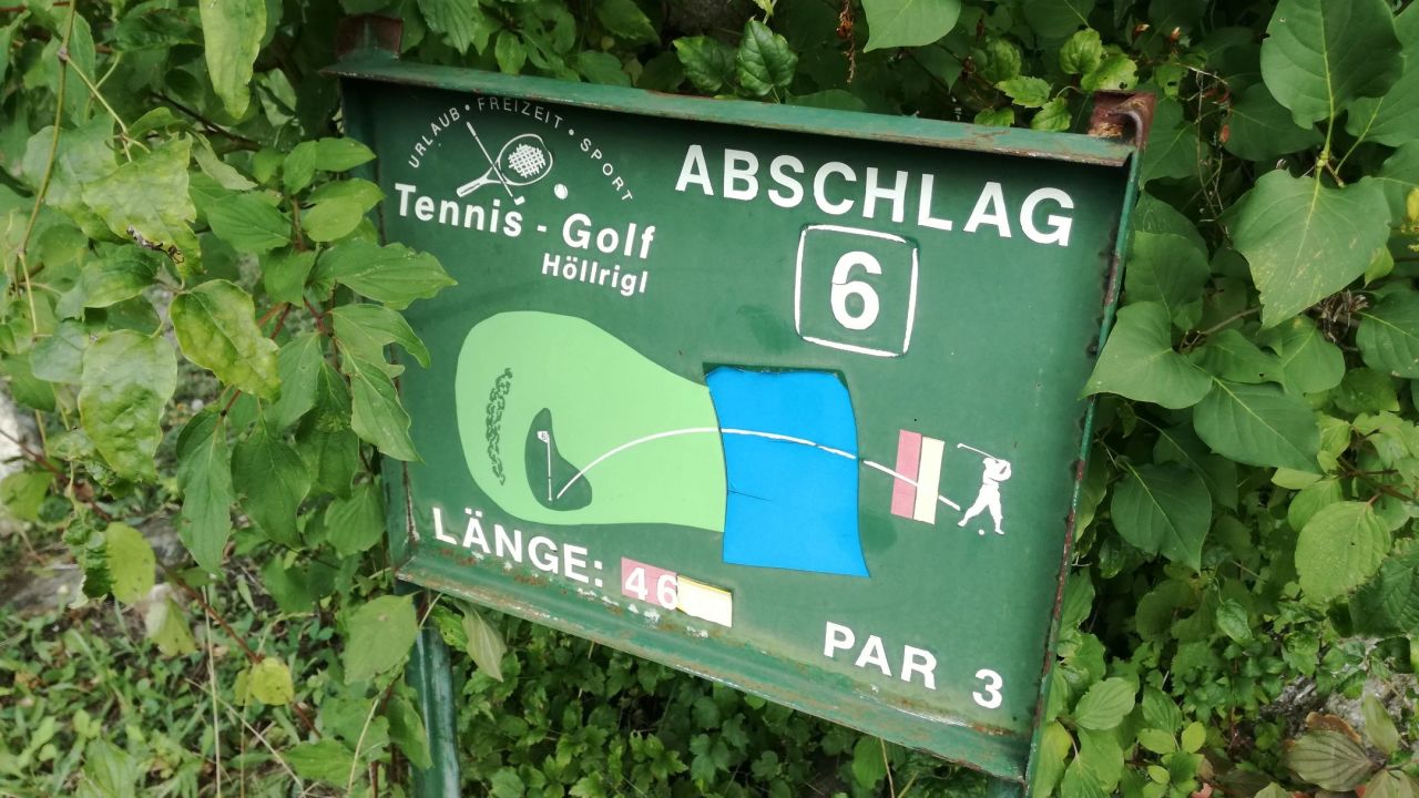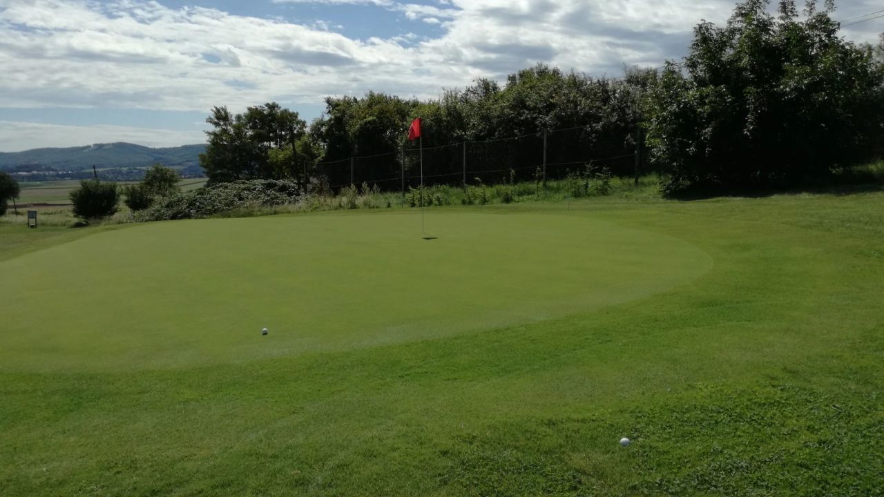 Wegen dem hoteleigenen Kurzplatz kommen wir nicht mehr, Abschläge auf Matten, Grün mit Kunstrasen, macht keinen Spaß.