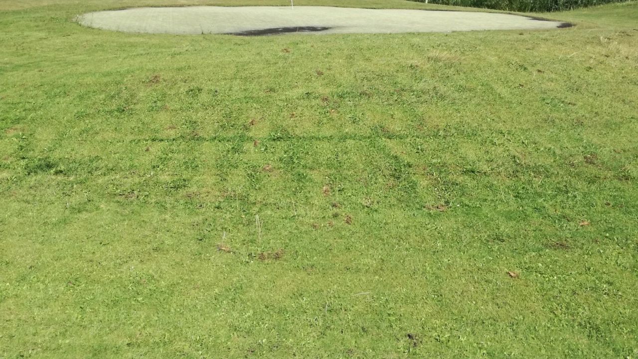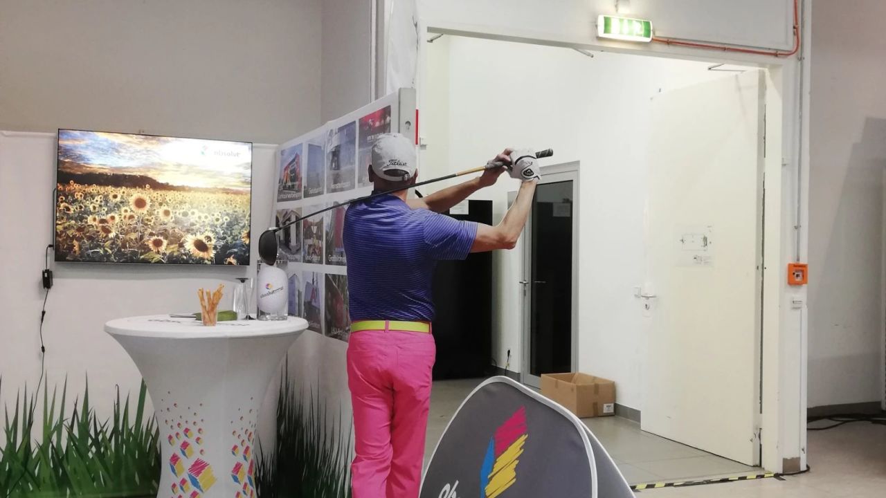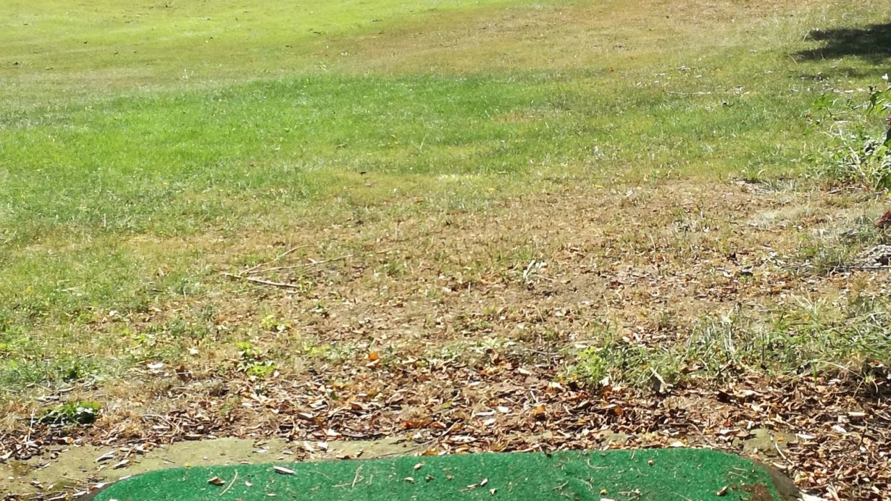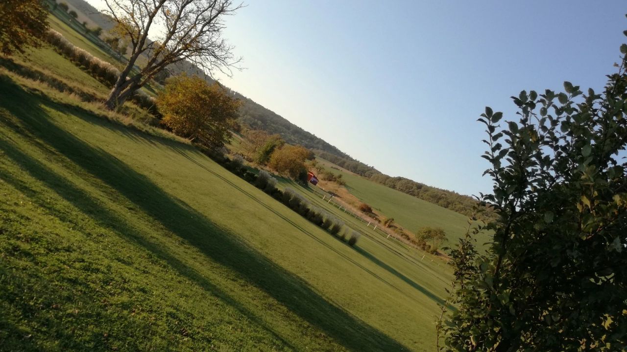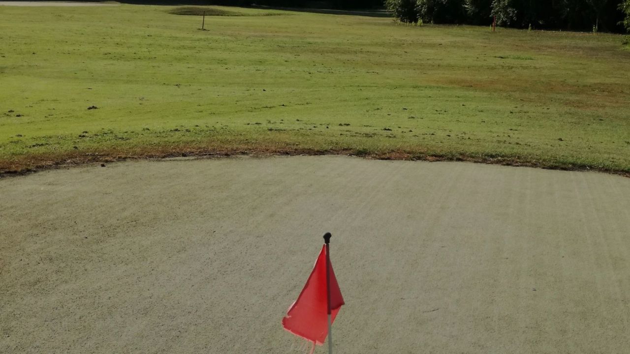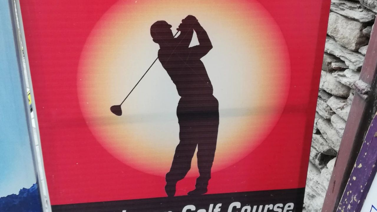 Wegen dem hoteleigenen Kurzplatz kommen wir nicht mehr, Abschläge auf Matten, Grün mit Kunstrasen, macht keinen Spaß.