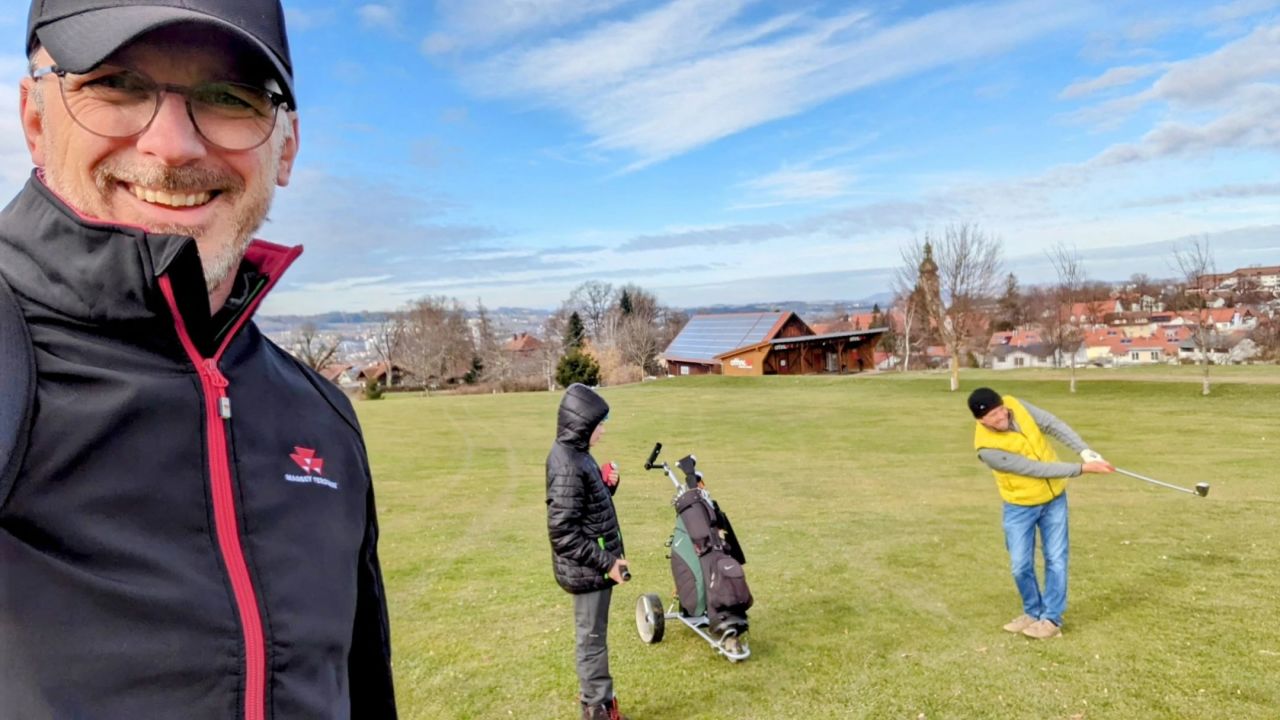 Erster, kurz vor 8 Uhr war fast alleine auf dem Golfplatz, nur der Greenkeeper war unterwegs. Ich bin kein ...