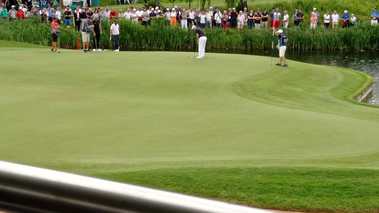 Martin Kaymer beim Putt an der 18
