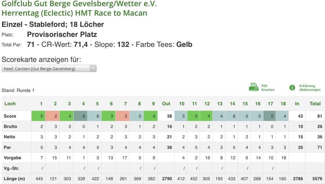 Am Mittwoch die Saisoneröffnung mitgespielt - 24 Brutto, 34 Netto - kann sich sehen lassen. Und schon wieder den ...