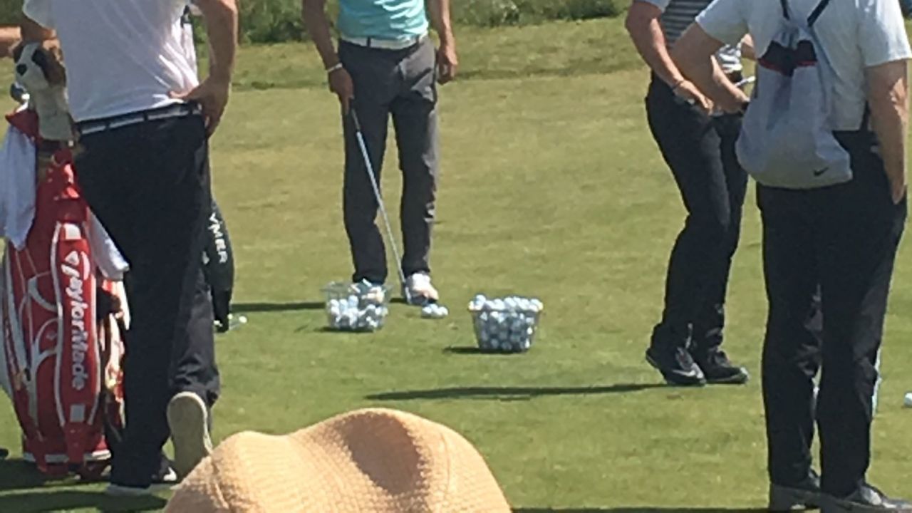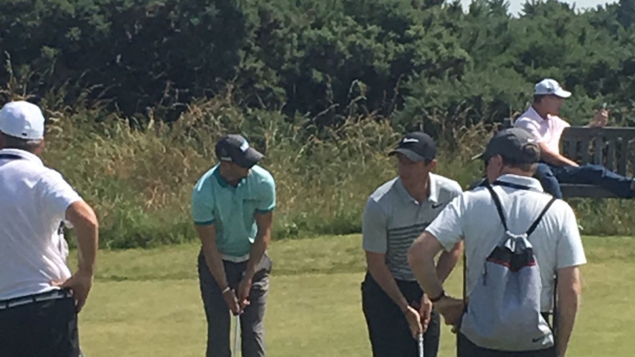 Wer da wohl bei wem abschaut? ?? Martin Kaymer und Rory McIlroy trainieren gemeinsam auf dem Übungsgelände in ...