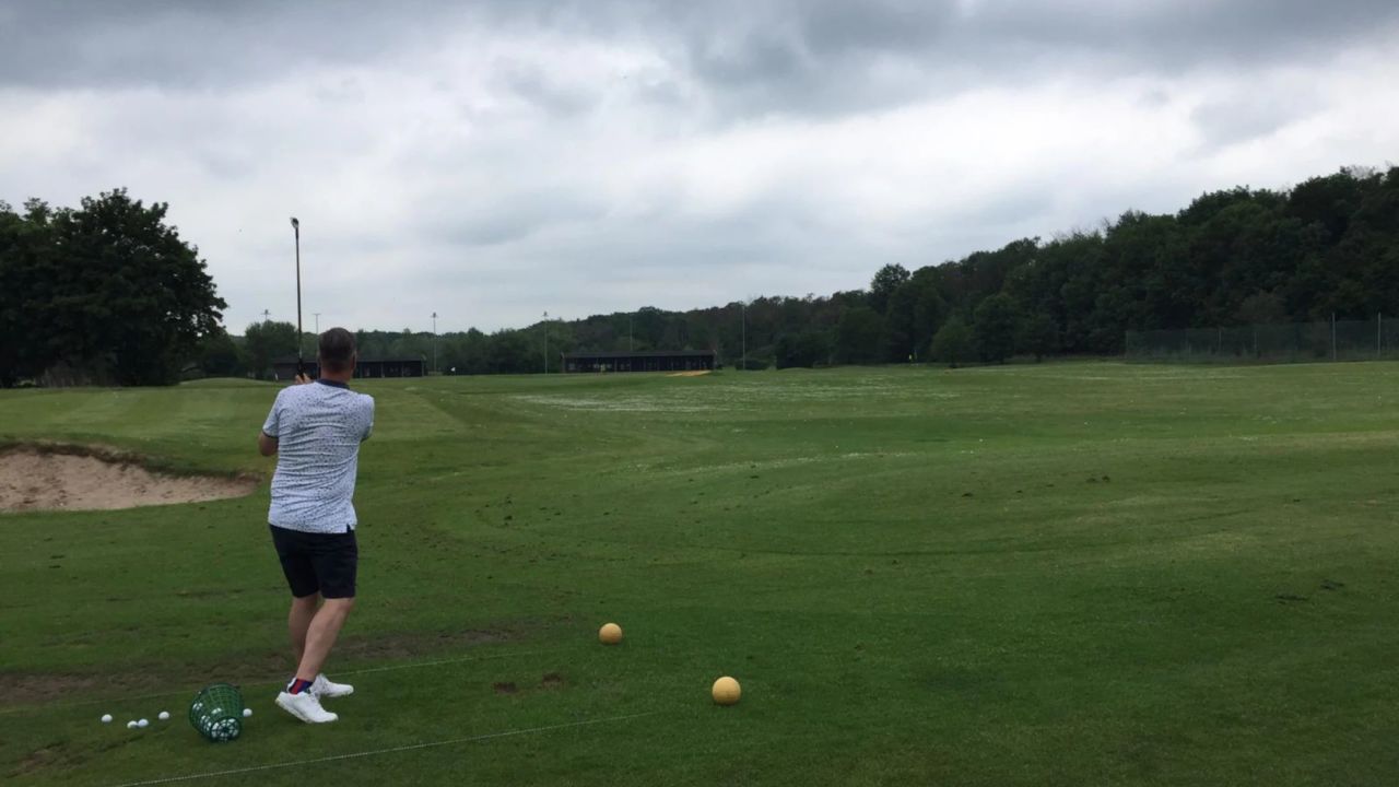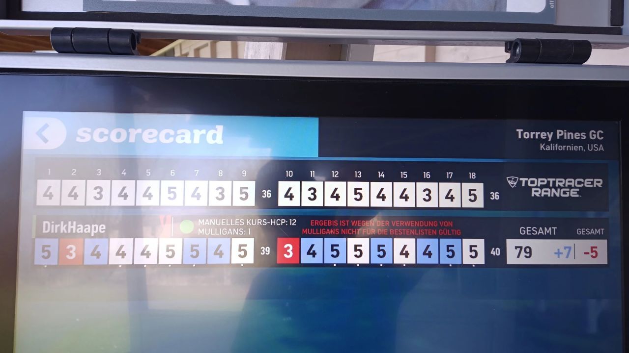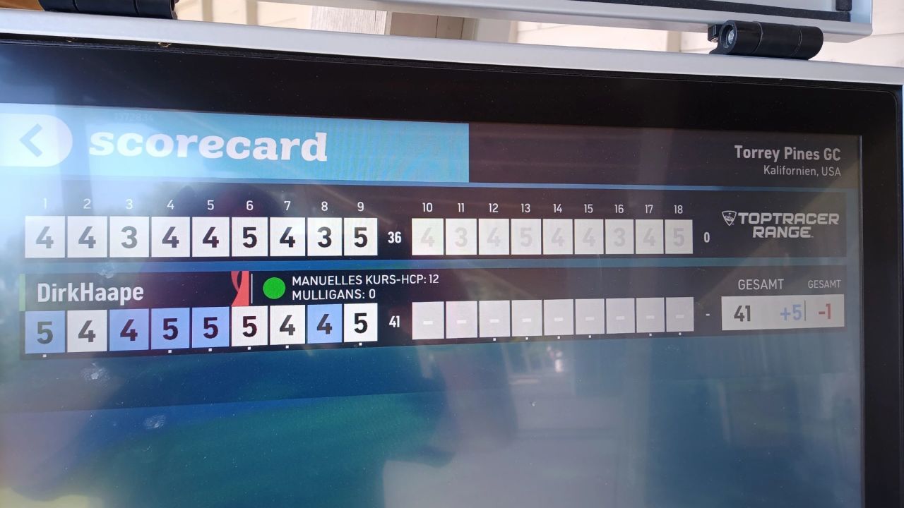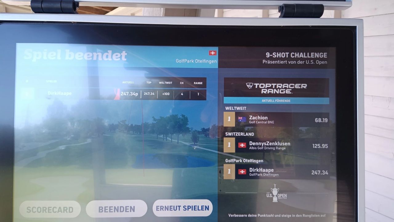 Bestes Wetter, leider keine Teetime mehr bekommen. Daher den TopTracer gerockt. Gibt's die Driving Challenge schon ...