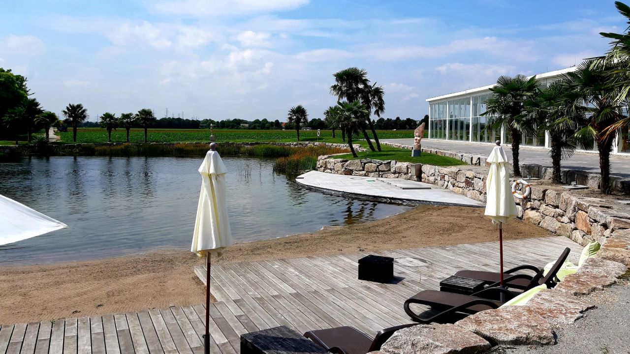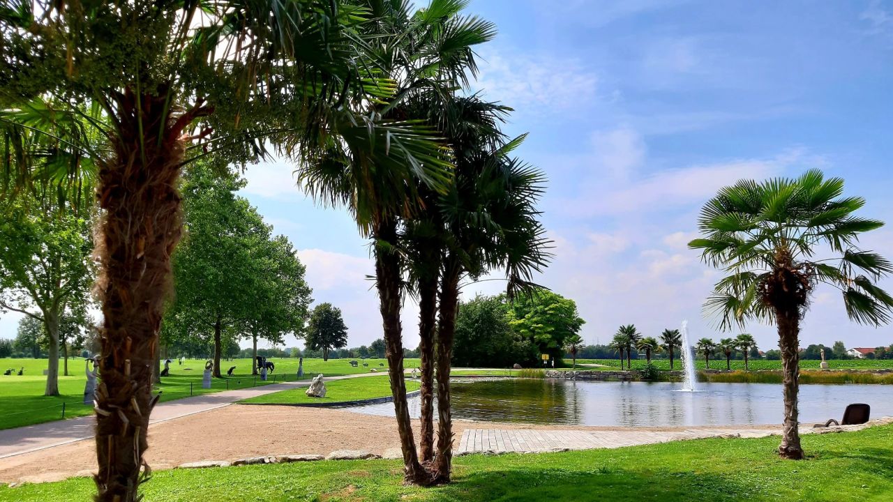 Die Palmen?? am Schwimmteich / vor der Driving Range ⛳?️♀️ sind inzwischen in Winterflies ...