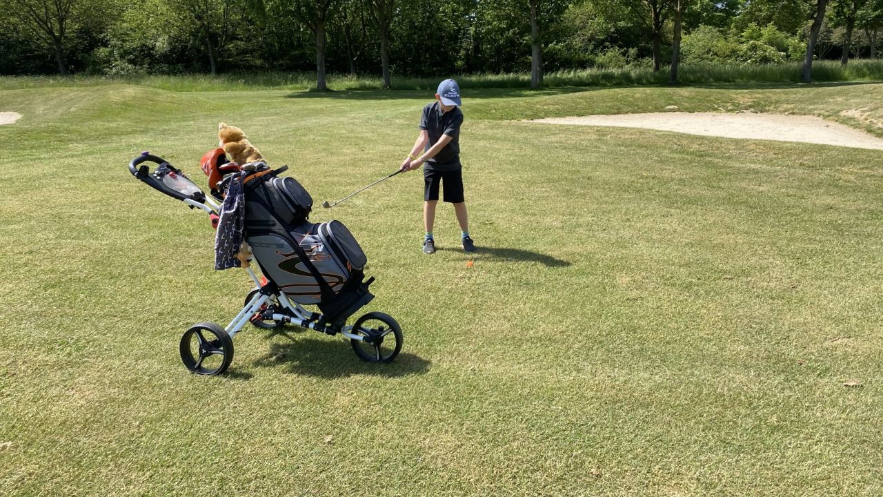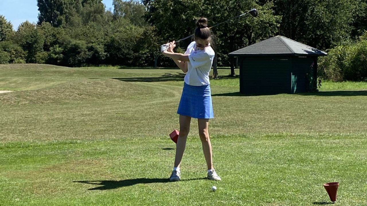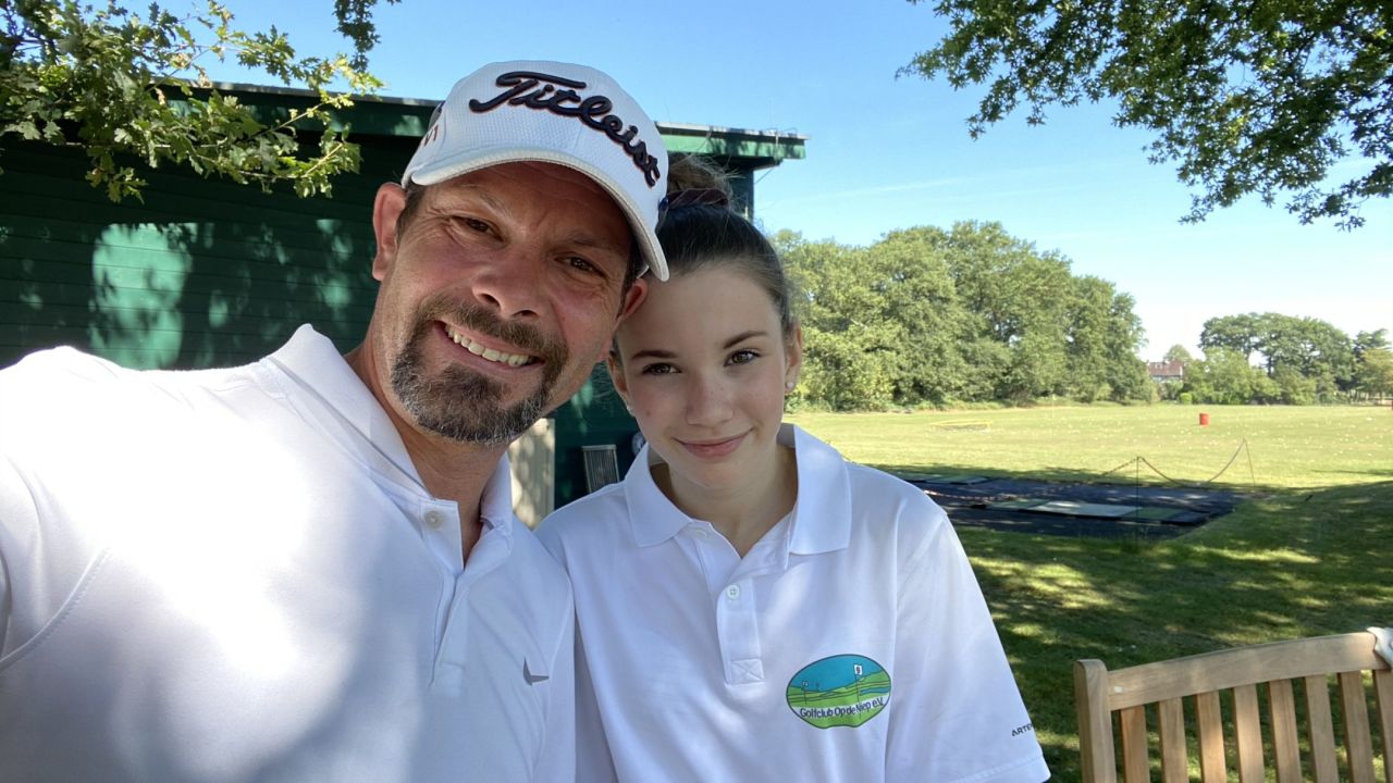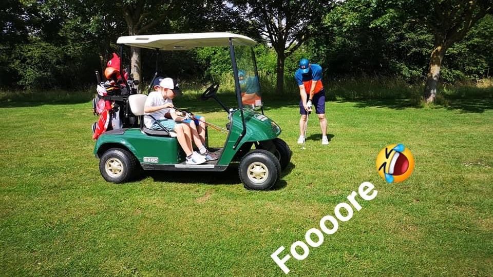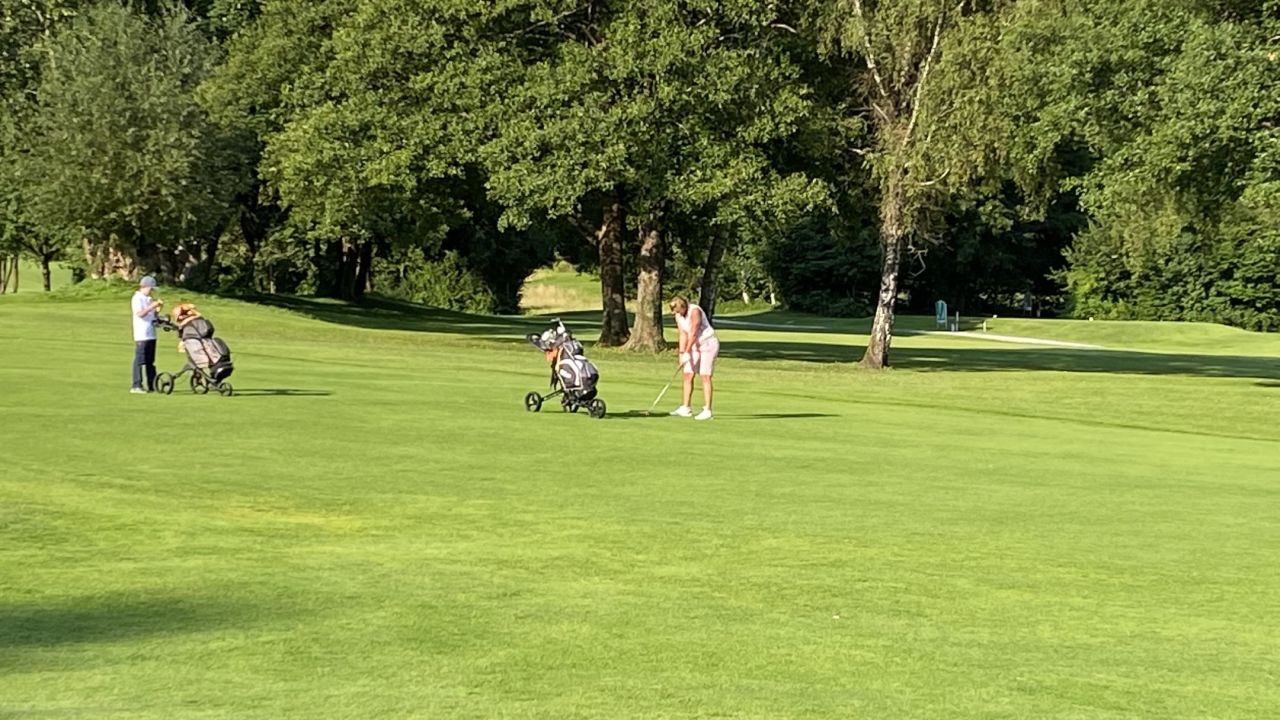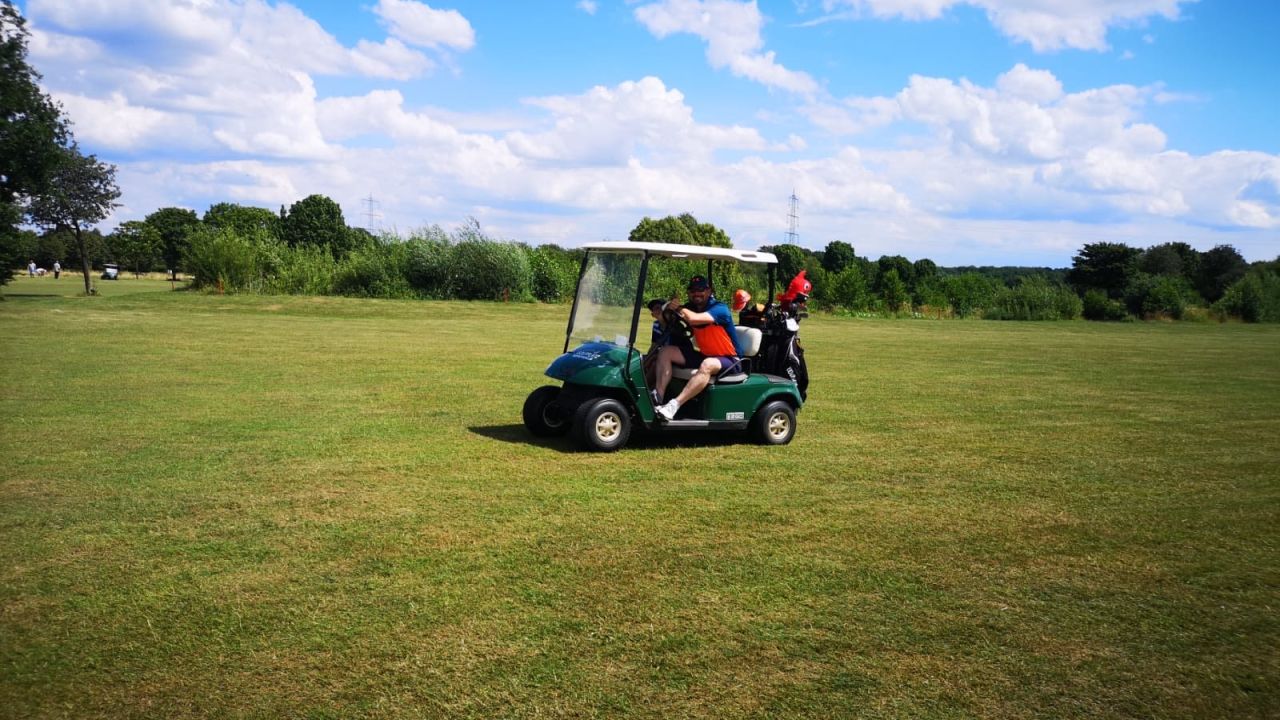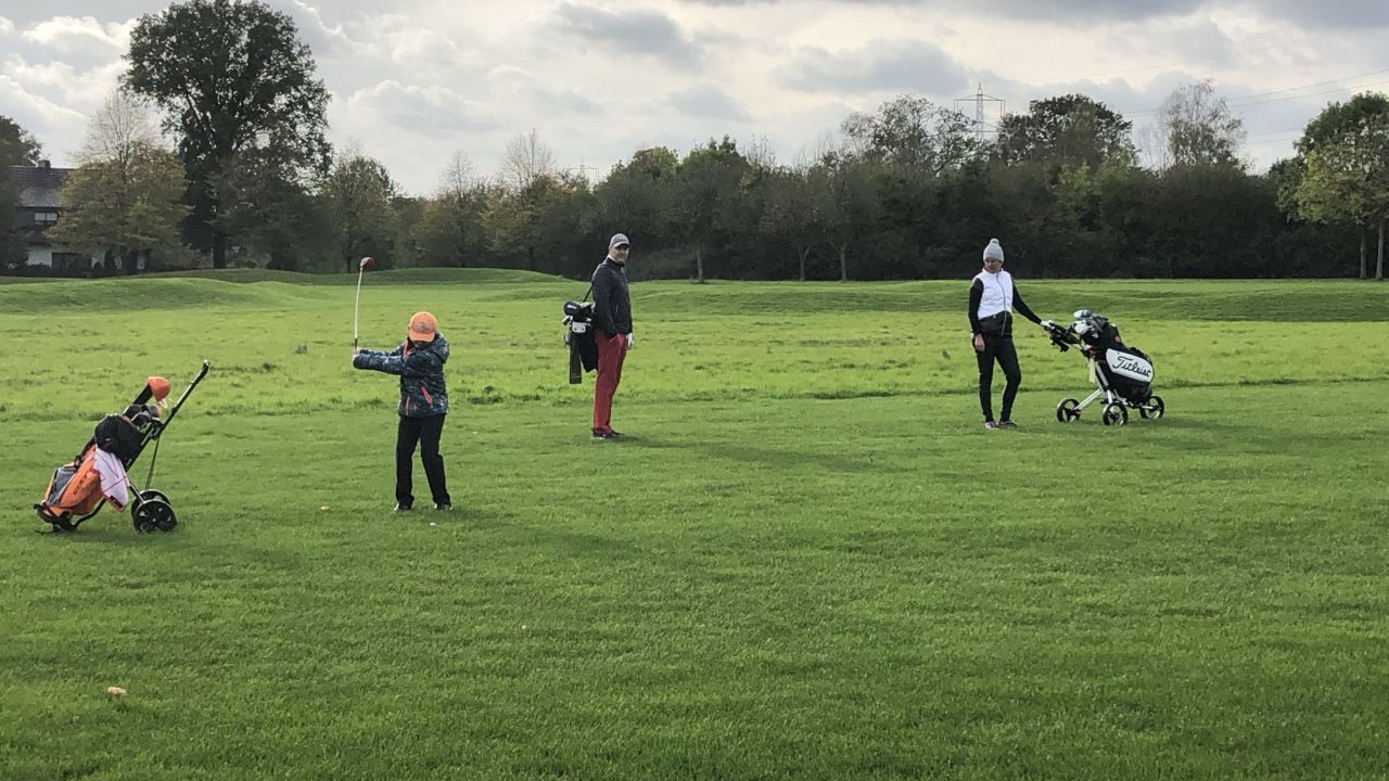Freitag Mittag, Teetime 12:10 Uhr, Außentemperatur 31 Grad ?. Na da kann man ja mal ne kleine Runde mit der Tochter ...