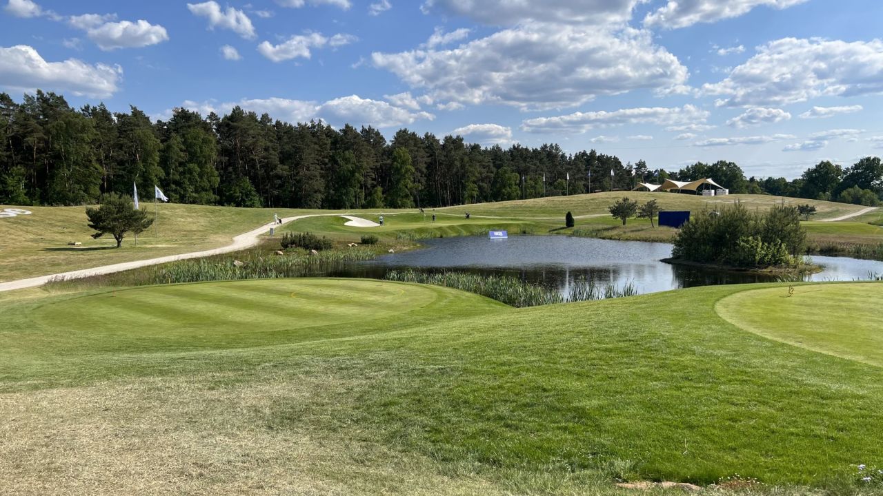 Kieffer auf Bahn 18 mit +7 Schlägen nach 9 Bahnen. Sehr schade.