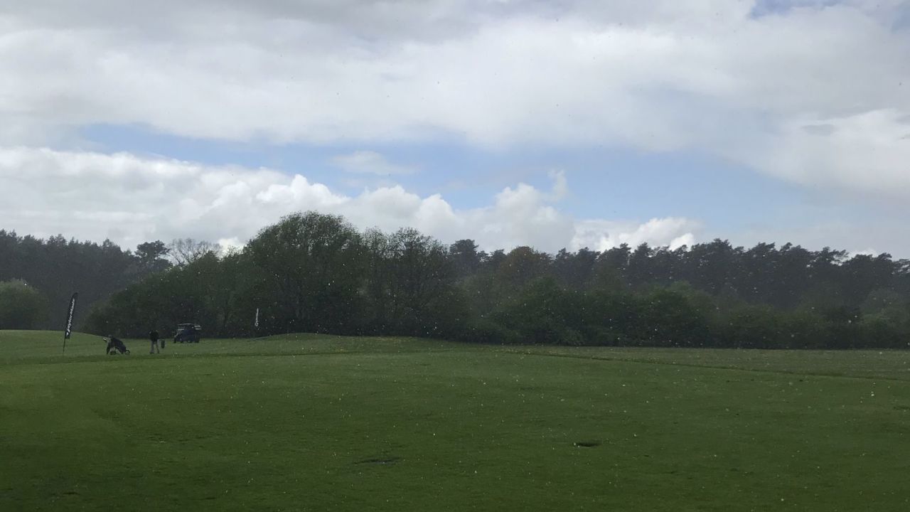 Vorübergehend mussten die Boxen der Drivingrange heute als Schutzhütte herhalten. Regen wie unter der Dusche stehend. ...