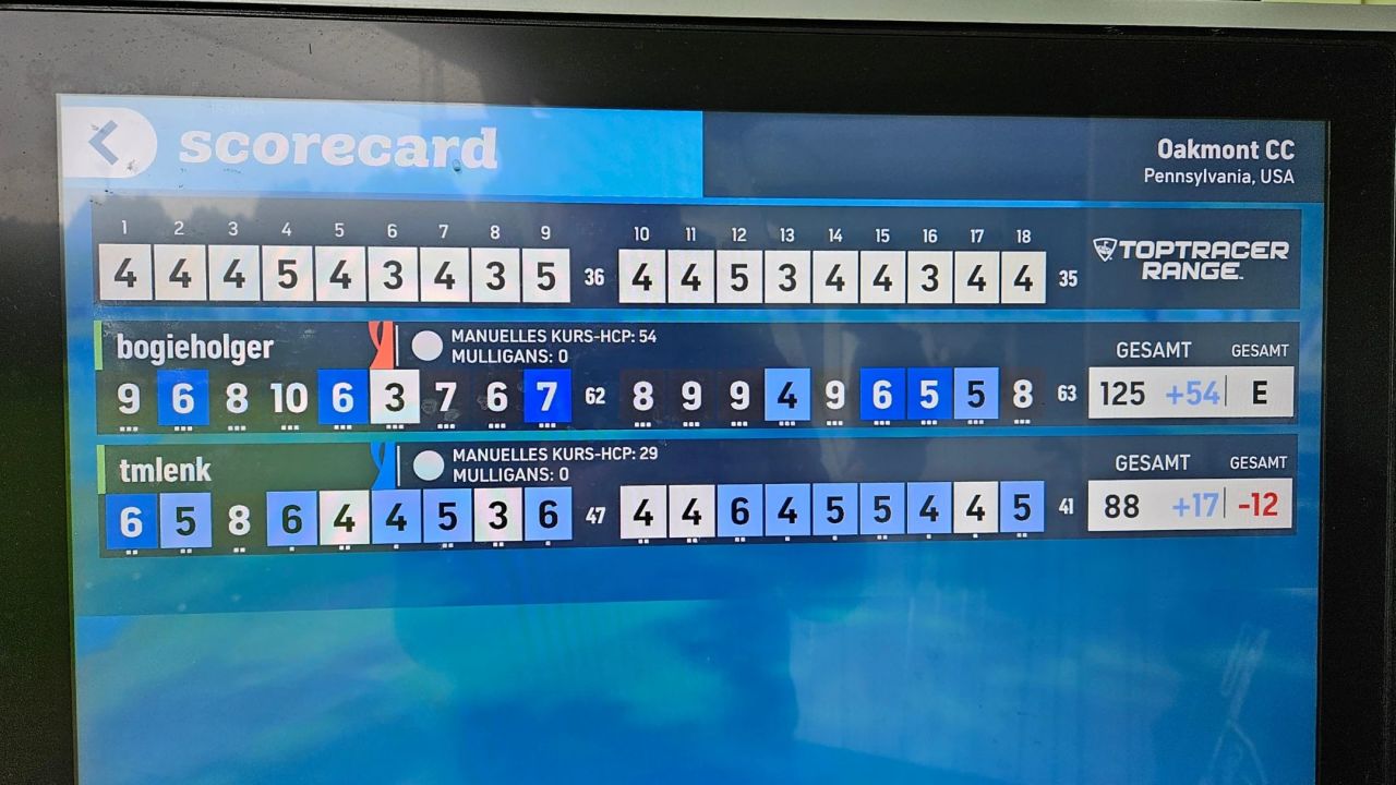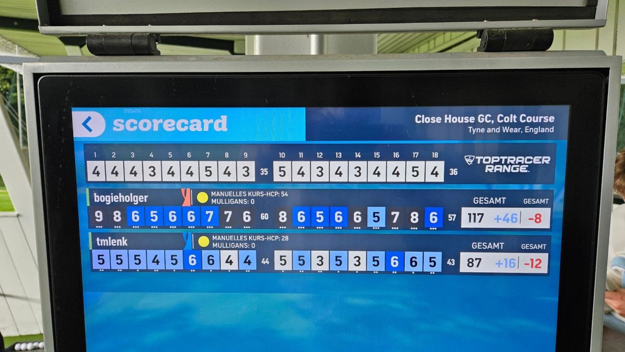Heute mal wieder mit einem Clubfreund auf die Runde. Einige Par und Bogeys aber auch richtig ordentlich Grütze. Golf ...