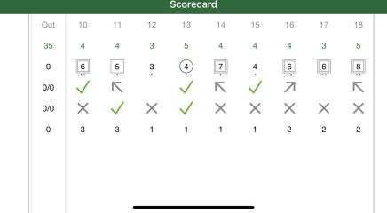 Erste Runde nach dem Winter auf dem Heimatplatz. Durchwachsen, vom Birdie bis zum Triple-Bogey alles dabei. Das ...
