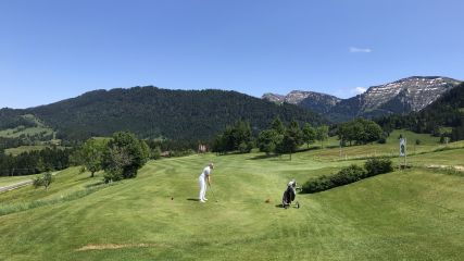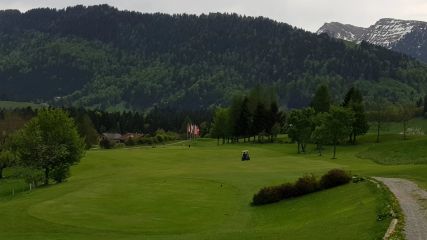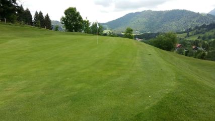 Hier ist ein Card zu empfehlen wenn man zu Fuß nicht ganz so fit ist. Nach den 18 Loch hat man einige Höhenmeter hinter sich. Es gilt das Gelände zu nutzen um einen guten Score zu bekommen. Die Anstrengungen des Bergauf und Bergab werden durch den tollen Blick auf Oberstaufen belohnt.