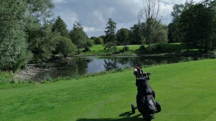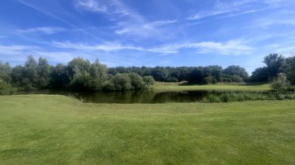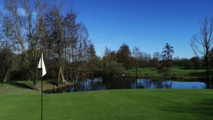 Prächtige Niederrhein Natur : Blick über den Teich von Bahn 8 auf die 7 von Golf International Moyland