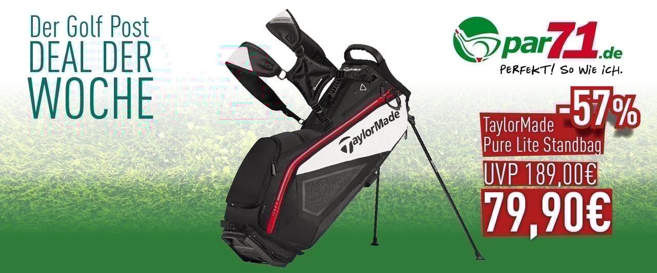 TaylorMade ist es mit dem Pure Lite Standbag gelungen ein Bag zu konzipieren, welches einen optimalen Tragekomfort durch sein Rucksacktragegurt-System bietet und mit nur 2,5 kg ein minimales Eigengewicht aufweist. Diese Woche erhalten Sie das Leichtgewicht von TaylorMade zum Tiefpreis von nur 79,90€, was einem Rabatt von 57% entspricht!