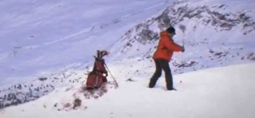 Eine kleine Challenge vor der Kulisse des Mont Blanc? Diese zwei Franzosen veranstalteten einen kuriosen Golf-Ski-Wettkampf.Dieser Wettkampf war "extraordinaire". Philippe Guilhem und der französische Ski-Freeride-Weltmeister Guerlain Chicherit dachten sich für den Snow Golf Cup 2010 eine ganz besondere Promotion-Aktion aus: Sie ließen sich im Skigebiet Megève St. Gervais auf dem Mont d'Arbois per Helikopter aussetzen. Guilhem hatte seinen Golfbag dabei, Chicherit seine extrabreiten Freeride-Ski. Der Wettkampf: Wer erreicht schneller die Fahne, die mehrere Hundert Meter weiter unten im Wind weht? Der geschlagene rote Ball von Guilhem oder erreicht Freeride-Weltmeister Chicherit das Loch schneller? Ob der Ball gar das Loch erreicht, erfahrt Ihr im Video.