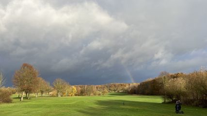 …07:40 Uhr Startzeit, im Nieselregen gestartet und 16 Löcher im Regen gespielt. Auf der 17 und 18 kam dann sogar mal ...