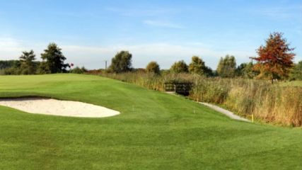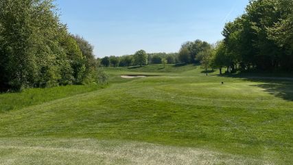Loch 18: Ein blinder Schlag in ein Tal kitzelt auf diesem PAR 4 an den Nerven. Orientierungspfähle geben die richtige Richtung vor. Das Gelände hängt nach rechts runter. Viele Bäume lassen das Loch optisch sehr ansprechend wirken, bestrafen jedoch einen Fehlschlag. Vor dem Grün befindet sich ein Wasserhindernis,welches sich um das Grün herum zieht. Ein relativ starker Höhenunterschied ist vom Abschlag bis zum Grün zu erkennen, da das Grün im Tal liegt. Insgesamt ein sehr spannendes Abschlussloch.