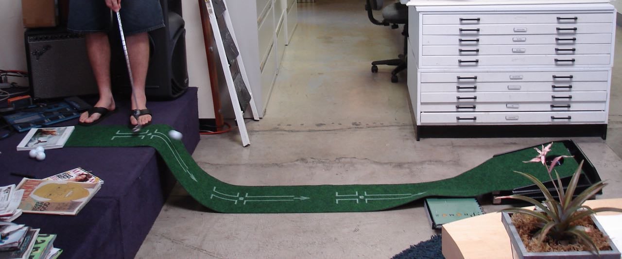Für das Golfspielen im Büro braucht es nicht viel: Einen Schläger, einen Ball und das Mobiliar als Parcours. Der Kreativität beim Parcoursaufbau sind hierbei keine Grenzen gesetzt, alles ist möglich.