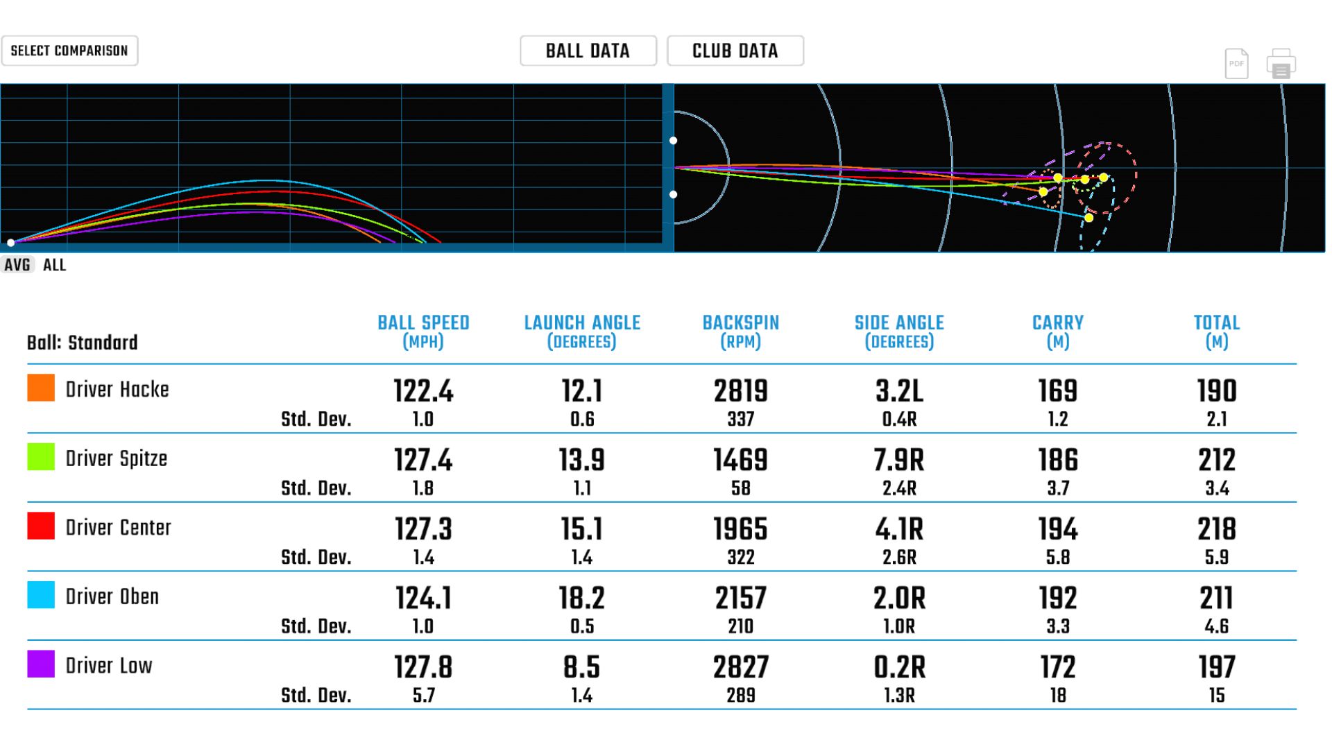 • Treffer zu hoch: Der Abflugwinkel steigt, der Ball hat weniger Spin – ebenfalls mit Distanzverlust als Folge.