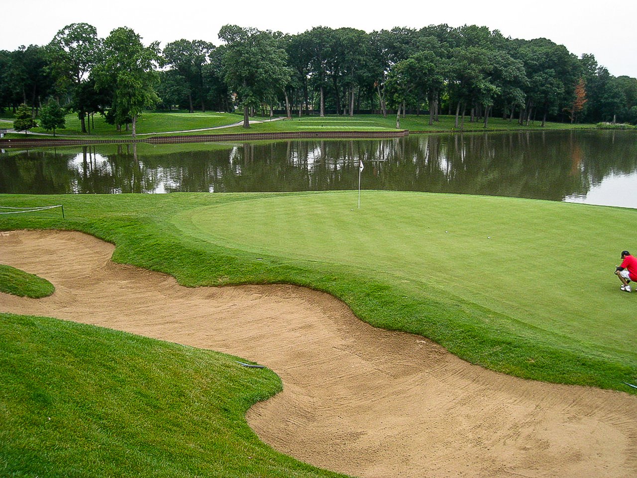 Das längste Par 5 ist auch das schwerste Loch des gesamten Platzes. Bei diesem Loch lautet die Devise, auf gar keinen Fall das Grün zu verfehlen, denn sonst findet man seinem Ball in einen der drei tiefen Grünbunker wieder. Das Grün ist leicht erhöht und weist viele Wellen auf, dadurch ist es überaus schwierig zu lesen.