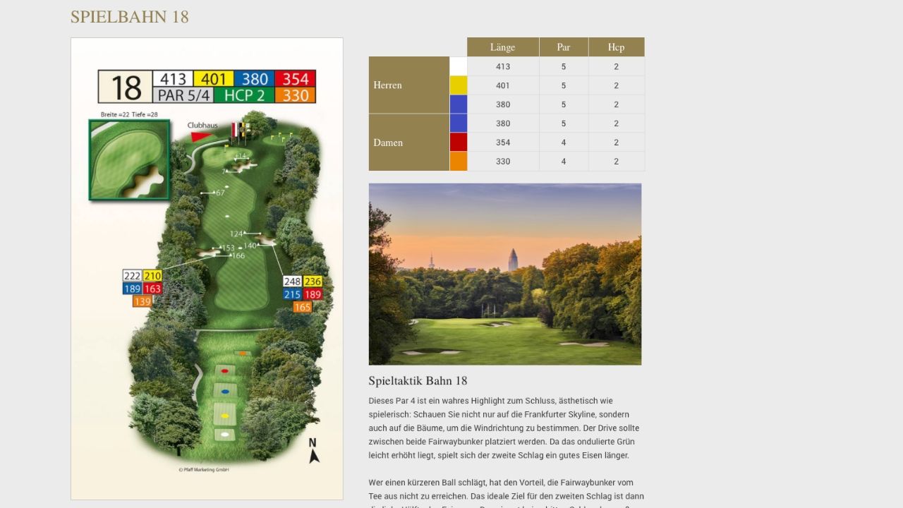 unsere im zurückliegenden Jahr neu präsentierte Website entwickeln wir kontinuierlich für Sie weiter. Heute möchten wir deshalb Ihr Augenmerk auf die 18 neuen Seiten zu den Spielbahnen des Frankfurter Golf Clubs unter dem Menüpunkt „PLATZ“ lenken.