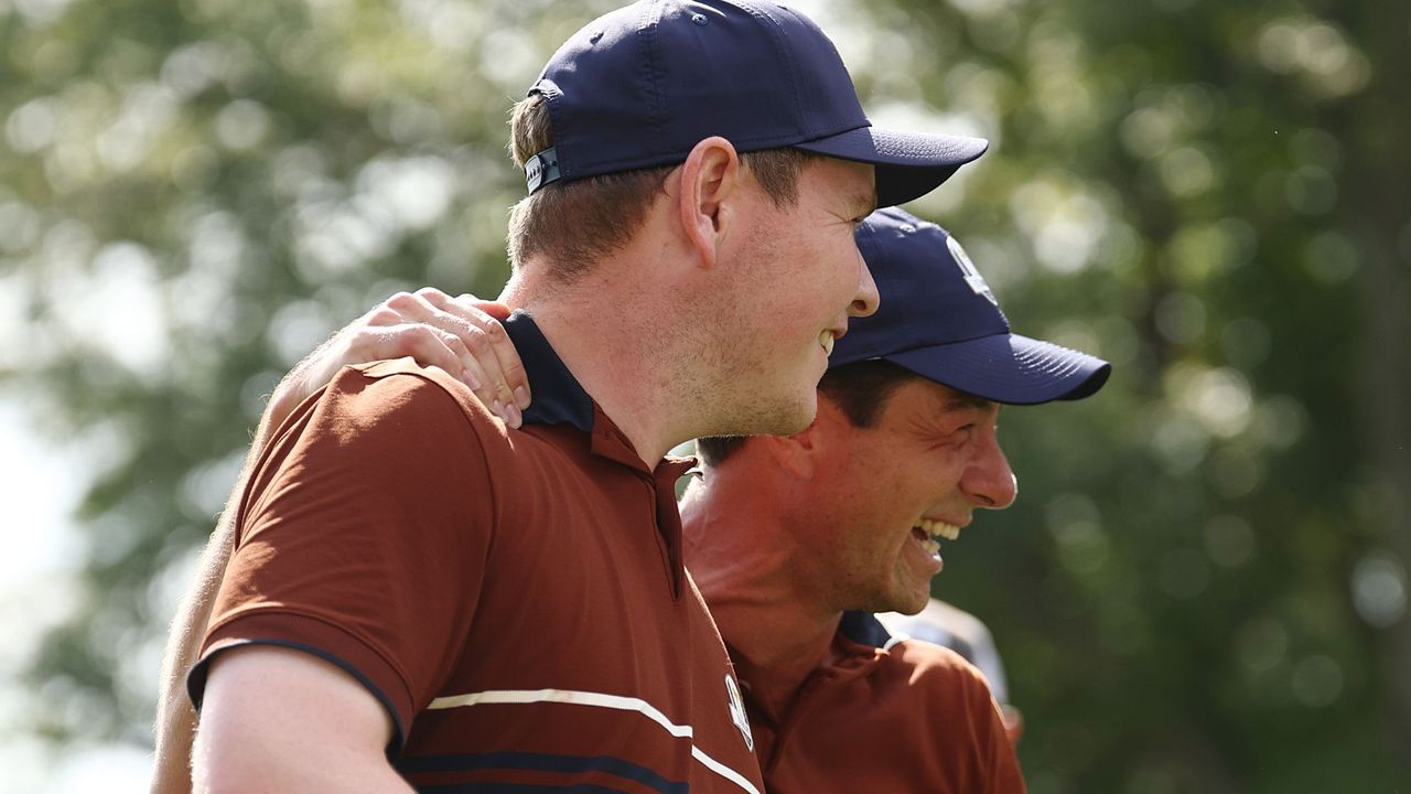 Robert MacIntyre und Viktor Hovland holen einen Punkt für Team Europa am Samstag. Am ersten Tag waren Viktor Hovland und Robert MacIntyre die einzigen Foursome-Spieler des europäischen Teams, die einen Punkt abgeben mussten. Am Samstag wollten sie dies unbedingt verhindern und kämpften bis zum letzten Loch gegen Scottie Scheffler und Russell Henley - mit Erfolg. Am Ende holten sie einen ganzen Punkt für Europa und erhöhten den Vorsprung auf insgesamt fünf Punkte.