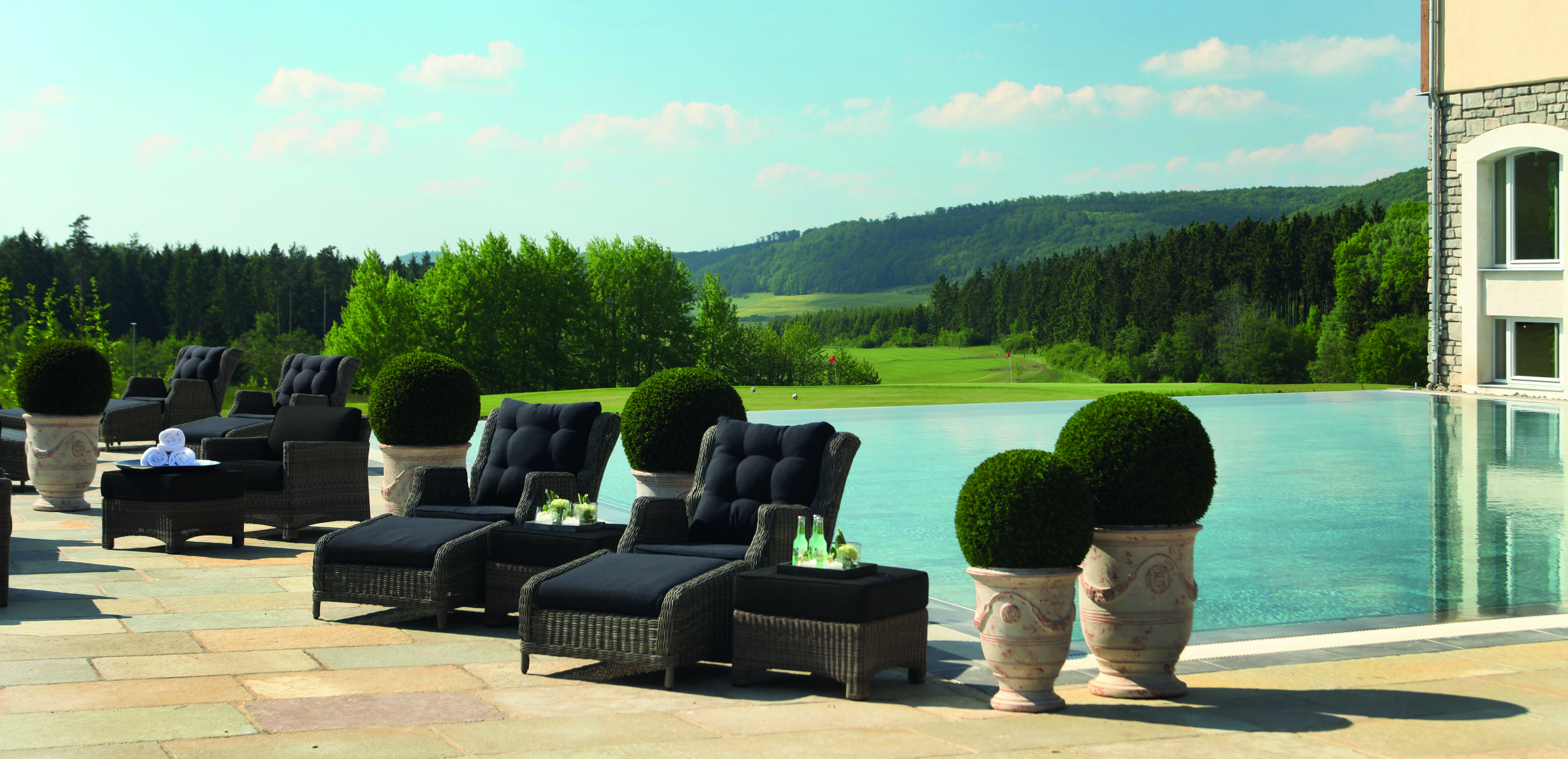 Blick ins Land: Der Außenpool des 3.000 Quadratmeter umfassenden LindenSpa.(Foto: Spa & GolfResort Weimarer Land)