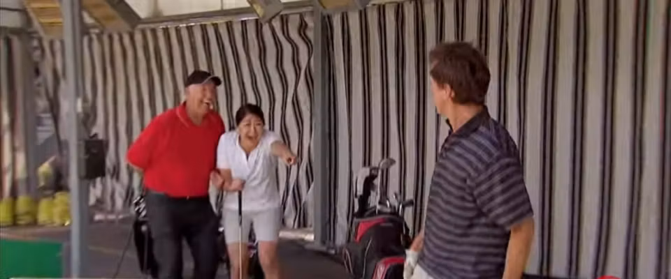 Es ist der absolute Alptraum für jeden Golf-Neuling: Da steht man auf der Driving Range, freut sich über jeden noch so schlecht getroffenen Ball, und dann lacht sich der Typ daneben bitter böse schlapp über einen selbst. Spätestens wenn der dann noch die Kamera auspackt, um das Grauen von Golfschwung weiter zu verbreiten, spätestens da hört der Spaß auf - außer die Jungs mit der versteckten Kamera haben sich die ganze Sache ausgedacht. Eine Freude für jeden Zuschauer, und nach der Auflösung dürfte das Trauma dann auch überwunden sein.