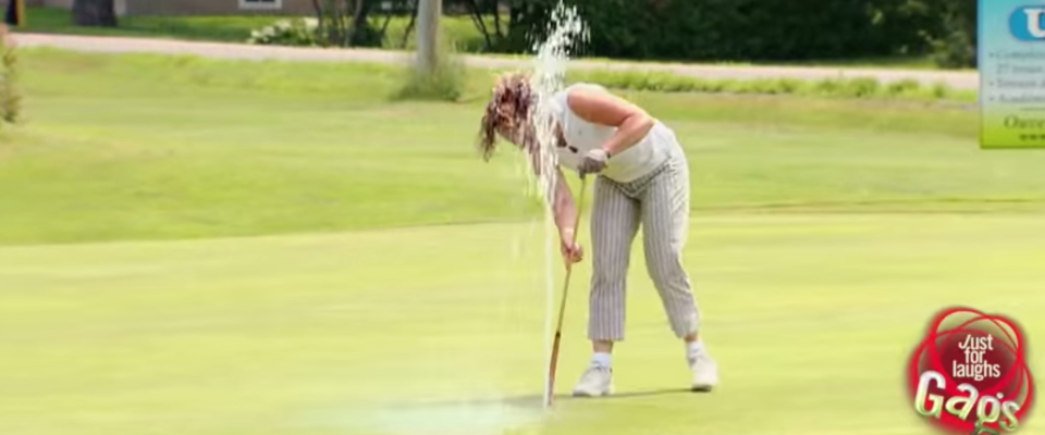 Gut, dass die Kollegen des kanadischen Verstehen-Sie-Spaß-Teams sich diesen kleinen Scherz für die wärmeren Tage des Jahres ausgedacht haben - in den ersten Dezember Tagen auf einem deutschen Platz hätten die Opfer wohl nicht ganz so gut drüber lachen können. In der kanadischen Sonne allerdings könnte die kleine Fahnen-Dusche eine willkommene Abwechslung gewesen sein, in jedem Fall aber eine originelle Begebenheit, die man nicht alle Tage auf dem Grün erlebt.